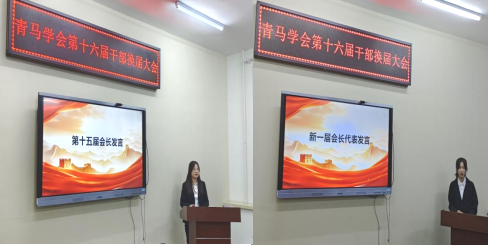 换届大会在观看青马学会活动剪影中拉开帷幕,第十五届副会长何红霞对过去一年里社团在举办活动、社团管理、荣誉获奖等方面进行了总结,分享了体会与经验,也指出的不足与希望。新一届会长滕飞代表全体换届干部发言,她阐述了对社团未来发展的规划,将以创新的思维和务实的行动开展更多富有特色的活动,提升社团活力和质量,同时也要加强社团管理,提升社团的凝聚力,为社团发展增光添彩。