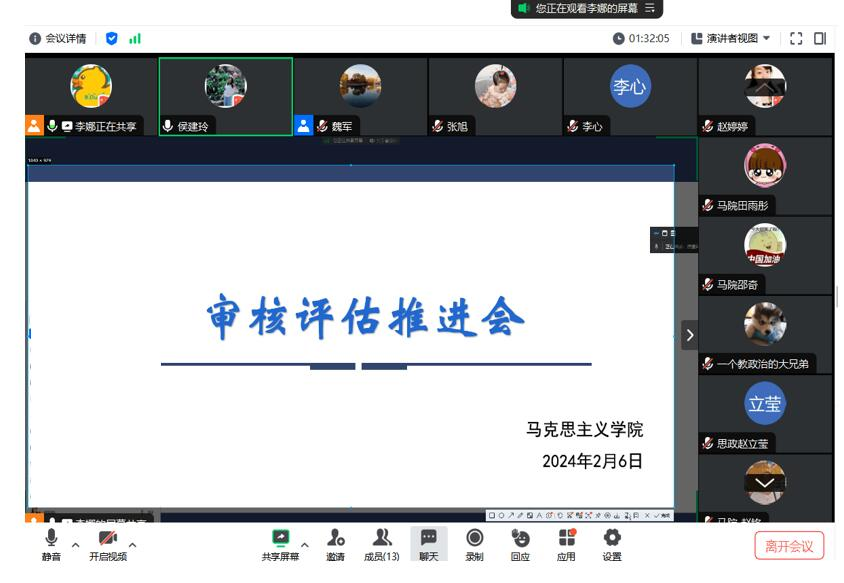 为常态化推进本科教育教学审核评估工作,2月7日,马克思主义学院组织召开审核评估推进会,会议由学院教学副院长李娜主持,马克思主义学院全体教师参会。