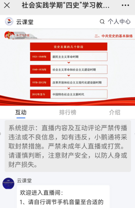 为全面贯彻习近平新时代中国特色社会主义思想,落实立德树人根本任务,进一步丰富、拓宽学生们在社会实践学期的内容,1月13日上午,马克思主义学院开展了社会实践学期“四史”学习教育系列讲座,常立凯、邵奇两位老师担任主讲,本次讲座的观看人数达1.3万人次。