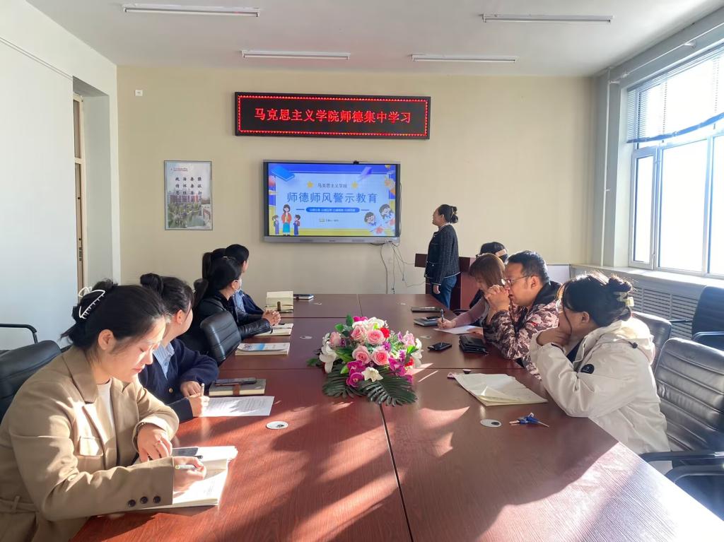 10月16日下午,马克思主义学院在三教1211组织开展了师德集中学习,张旭老师领学新时代高校教师职业行为十项准则及警示案例。