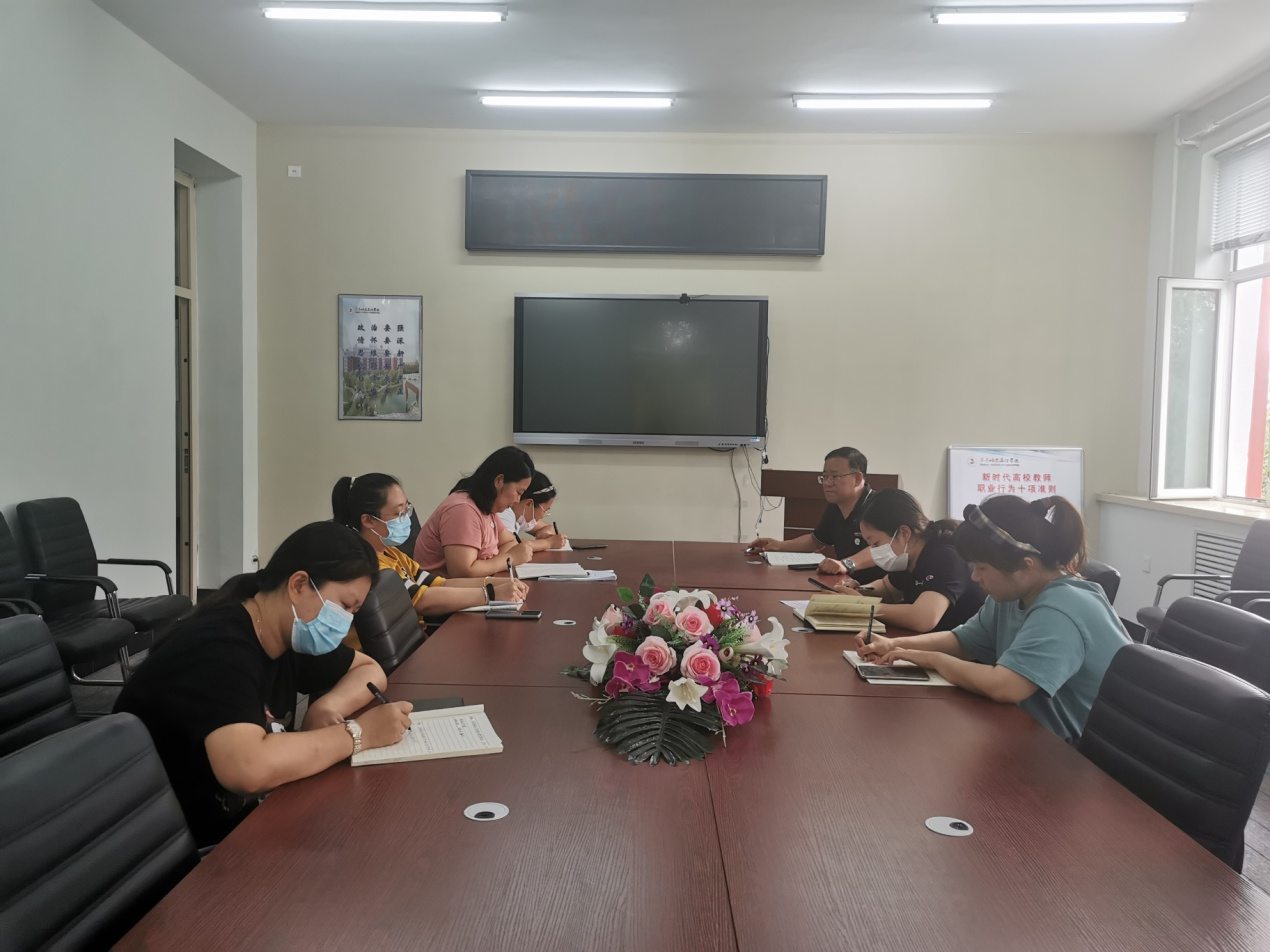 为深入学习领会习近平总书记关于教育的重要论述和全国教育大会精神,使教师提高思想认识、坚定理想信念、厚植爱国情怀、涵养高尚师德。根据学校及部门工作安排,思政教学部有序开展师德专题教育学习。7月20日下午,思政教学部魏军主任进行开班讲话并领学,部门全体教师参会。