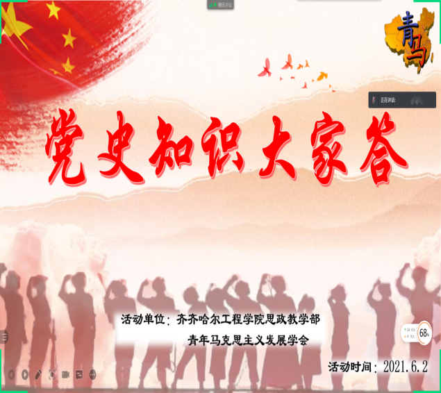 为庆祝中国共产党建党100周年,营造“以赛促学,以学促行”的校园文化氛围,青年马克思主义发展学会于6月2日和6月4日分别举办了党史知识大家答竞赛活动和“青春‘友’约”趣味主题活动。
