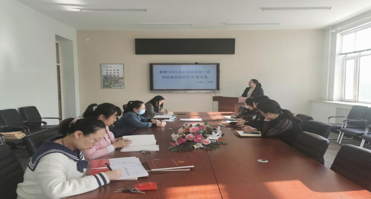 2021年5月13日下午,思政教学部在3教1211会议室进行外出培训学习经验交流会。主任助理李娜把她2021年4月到哈尔滨工程大学,参加省高校思政课教学指导委员会举办的“2021年思政课国家级一流课程建设研讨会”的主要内容及学习体会进行了汇报交流。
