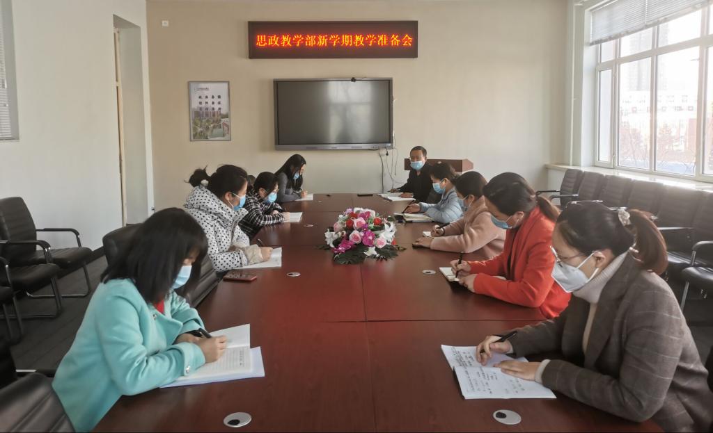 新学期开学在即,为更好地落实新学期课程优化的相关要求,保障教学工作顺利开展,3月3日上午,思政教学部在3教1211会议室召开新学期教学准备会,思政教学部教学工作副主任邵奇主持会议,部门全体教师参加。
