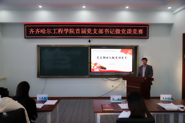 2021年1月8日下午,为落实校党委关于红旗党支部竞赛活动有关要求,党委组织部举办了首届党支部书记微党课竞赛。本次竞赛活动,本着“以赛促训、以赛促学”的原则,各二级单位党组织精心组织了本单位党支部书记的微党课竞赛,并选拔推荐了7名党支部书记参加校级竞赛,对全校党支部书记是一次学习和历练,对党支部工作是一次促进提高,对学校即将开展的“示范党支部创建”奠定了良好基础。校党委书记、各二级单位党组织书记及委员、党支部书记参加此次活动,党委组织部部长、党委宣传部副部长、各系党总支书记担任此次活动评委。