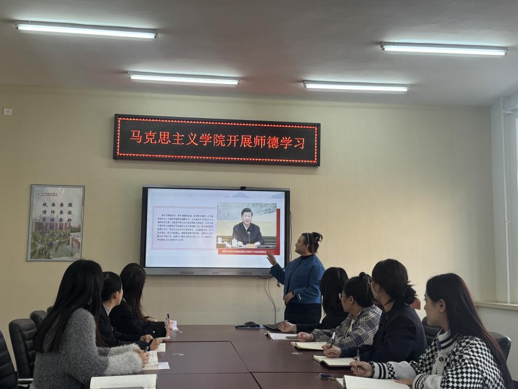 为全面贯彻习近平总书记在中共中央政治局第五次集体学习上的重要指示精神,学习党的教育方针、明确师德底线。9月31日,马克思主义学院开展在三教1211组织开展了师德集中学习。会议由马克思主义学院教师王蕊领学,马克思主义学院全体教师参加。