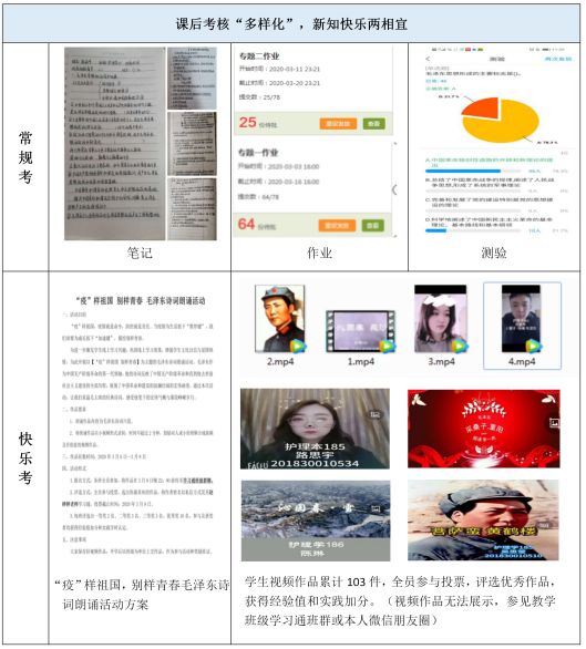 课后考核是学生巩固学习效果、教师进行教学反思的重要方式。但在防“疫”特殊时期,考核方式更要凸显以学生为中心,在确保教学效果的同时,减轻学生因线上教学以及“疫”情时期导致的焦虑学习心理状态。因此,作业,要快乐起来!评价——要投起票来!活动,要全员参与进来!