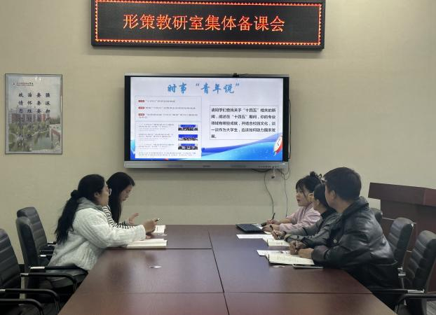 为进一步提升《形势与政策》课程教学的有效性与针对性,助力学生深入理解“十四五”规划的重大意义,10月20日形策教研室开展“决胜十四五,奋发向前行”集体备课活动。本次活动由教研室主任田雨彤主持,教研室全体教师参会。