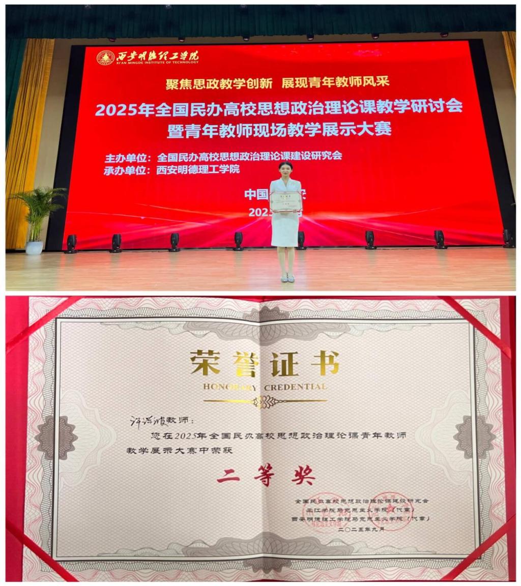 9月21日,全国民办高校思想政治理论课青年教师教学展示大赛在西安明德理工学院举行,来自47所高校的50名青年教师齐聚一堂,展开激烈角逐。我校马克思主义学院教师许洪波沉着应战,发挥出色,最终从众多选手中脱颖而出,荣获二等奖,为学校赢得了荣誉。