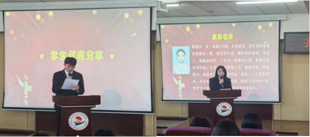 会上,获奖学生代表刘越、赵铭方发言,分享了自己在思政课学习方面的经验与感悟。刘越表示,通过对思政课的学习及实践,自己对马克思主义理论和党的创新理论有了更加深入地了解,增强了运用辩证唯物主义和历史唯物主义分析问题的能力。赵铭方同学则向大家分享了参与全省高校大学生“新思想·我来说”主题展示活动并荣获三等奖的经历与感悟,她表示思政学习不仅在于理论掌握,更在于实践运用,还鼓励同学们积极参与思政课讨论与实践活动,将思政知识与日常生活紧密结合。
