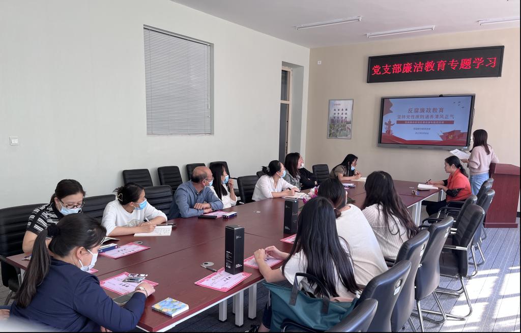 党支部书记赵婷婷强调,全体党员教师既要加强学习,提高履职能力,也要巩固廉政意识、坚守廉政底线,在教书育人的过程中传播廉洁自律正能量,坚决杜绝违规违纪问题发生。