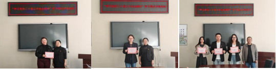 在评选结果揭晓仪式上,党支部对获奖党员进行了表彰,并颁发了荣誉证书。王蕊老师获得一等奖,许洪波、弓明仪老师获得二等奖,王岩、丁琪、赵铭老师获得三等奖。
