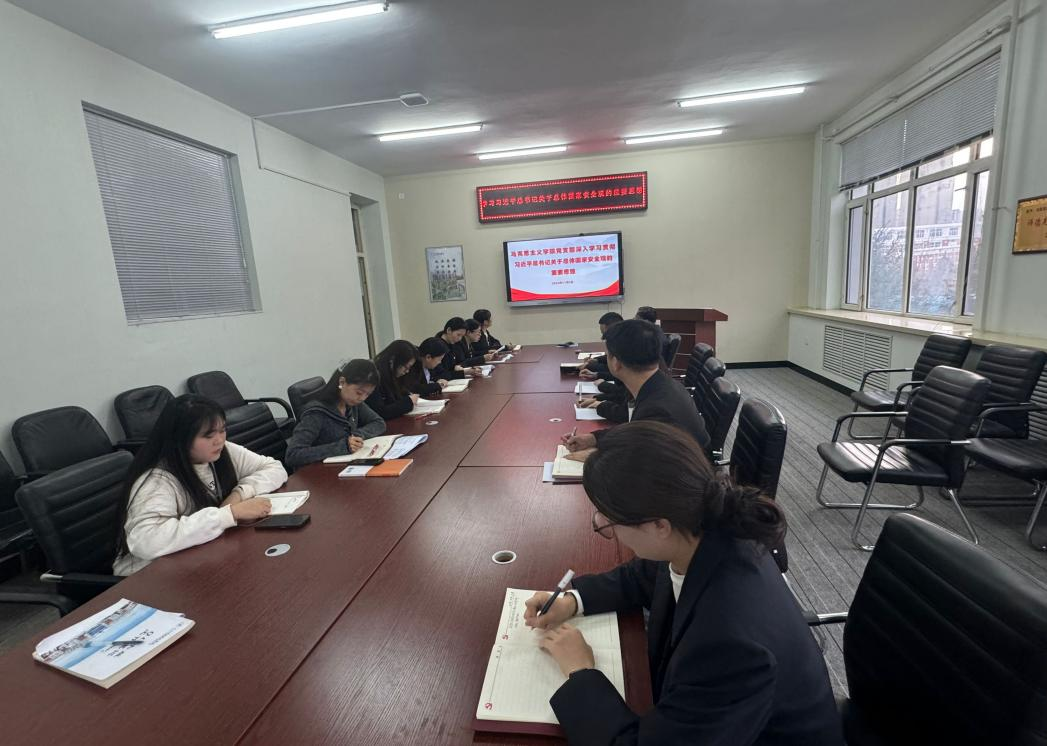 11月4日下午,为进一步深刻理解防范和化解重大风险、坚守安全发展底线的战略重要性,将维护国家安全的职责融入工作的各领域和全过程。马克思主义学院党支部举行专题学习会,深入学习贯彻习近平总书记关于总体国家安全观的重要论述,马克思主义学院党支部书记赵婷婷主持会议并讲话。